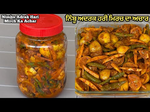 ਇਹ ਇੱਕ ਬਹੁਤ ਹੀ ਸਵਾਦਿਸ਼ਟ ਅਤੇ ਤਾਜ਼ਾ ਪੰਜਾਬੀ ਸਟਾਈਲ ਨਿੰਬੂ ਅਦਰਕ ਤੇ ਹਰੀ ਮਿਰਚ ਦਾ ਅਚਾਰ ਹੈ। ਇਸ ਨੂੰ ਘੱਟ ਮਸਾਲਿਆਂ ਨਾਲ ਤਿਆਰ ਕੀਤਾ ਜਾਂਦਾ ਹੈ ਅਤੇ ਚੰਗੀ ਤਰ੍ਹਾਂ ਸੁਕਾਈਆਂ ਸਮੱਗਰੀ ਨਾਲ ਬਣਾਇਆ ਜਾਂਦਾ ਹੈ ਤਾਂ ਜੋ ਅਚਾਰ ਲੰਬੇ ਸਮੇਂ ਤੱਕ ਖਰਾਬ ਨਾ ਹੋਵੇ। ਇਹ ਤਿੱਖਾ, ਖੱਟਾ ਅਤੇ ਸੁਆਦੀ ਹੁੰਦਾ ਹੈ, ਜੋ ਸਰਦੀਆਂ ਵਿੱਚ ਰੋਟੀ, ਪਰਾਂਠੇ, ਸਾਗ ਜਾਂ ਮੱਕੀ ਦੀ ਰੋਟੀ ਨਾਲ ਬਹੁਤ ਵਧੀਆ ਲੱਗਦਾ ਹੈ।
